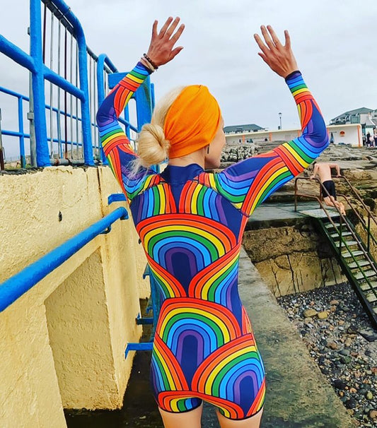 Blackrock Beachwear's collection features fun swimsuits, hoodies and surfrobes designed in bright colours paying homage to one of Irelands most quintessential swimming spots.