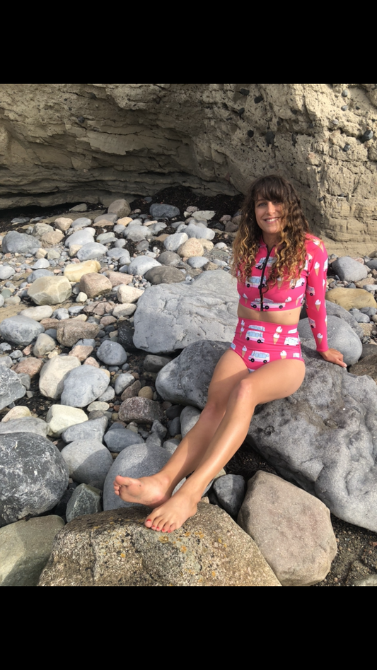 Shop our fun, sustainable and colourful range of swimwear. You'll find comfy swimsuits, snug robes, colourful hoodies and much more - all inspired by the magical swimming area of Blackrock towers in Salthill, Galway.